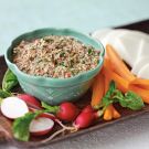 Just before serving, stir the lime juice into the dip. It should spread easily; if it is too thick, add a little water. Spoon the dip into a serving bowl, place on a platter with the vegetables and tortilla chips, and serve immediately. Makes about 1 cup dip.