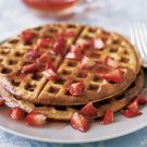 Transfer the waffle to a warmed platter and repeat with the remaining batter. Serve the waffles with the strawberry and honey sauce. Serves 4.