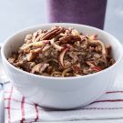 Rachael DeVaux, a registered dietician and personal trainer who shares her inspiring photos and ideas for healthy meals on her blog and Instagram account, Rachael’s Good Eats, came up with this recipe for a hearty, warming breakfast that is as healthy as it is delicious. Look for sprouted rolled oats at your local health food store or gourmet grocer, or order them online. If you don’t have a spiralizer, you can cut the apple into matchsticks or grate it using the coarse holes of a box grater instead.