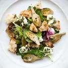 Warm Artichoke and Bread Salad with Marinated Crescenza