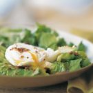 Use the freshest eggs possible for poaching, as they have a more solid white. If the white starts to spread, use a spoon to nudge it near the yolk. The addition of a little vinegar to the water also discourages spreading by causing the white to coagulate. Before putting the eggs on the salads, rest the base of the slotted spoon on a kitchen towel to blot away excess moisture.
