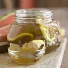 Set the watermelon mixture over high heat and bring to a boil. Reduce the heat to low and simmer until the rind turns somewhat translucent, 5 to 10 minutes. Discard the bag of spices. Spoon the watermelon mixture into the prepared jars, dividing the lemon slices and cinnamon sticks more or less evenly among the jars and leaving 1/4 inch of headspace.