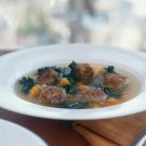 Minestra maritata, or “wedding soup,” traditionally included different cuts of pork and a big variety of vegetables, which were slowly simmered together until the ingredients were pronounced “married.” Here, in a streamlined version of this classic southern Italian soup, pork meatballs are cooked with a handful of fresh hearty vegetables.