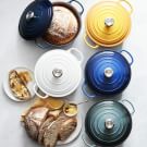 Transfer the bread from the Dutch oven to a cooling rack and test for doneness by lightly tapping the bottom of your loaf—it should sound hollow. Let cool for at least 1 hour before serving. This is important for the bread baking, as the proteins will continue to cook as the loaf cools. Serves 8 to 10.
