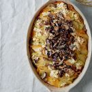 Ryan Burger, the cheese maker at Blackberry Farm, developed this recipe to highlight Brebis, a creamy sheep’s milk cheese he makes on the farm. In its place, you can use goat’s milk cheese or fromage blanc. He loves to forage for mushrooms and combines whatever he can find for this dish, such as the varieties suggested below. Unlike a traditional gratin, this one uses no cream; the cheese provides plenty of richness.