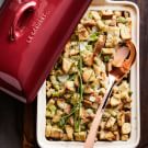 Our Mediterranean-style stuffing showcases tender, golden focaccia, a classic bread that has an exceptionally light, fluffy texture. Crafted from hearth-baked loaves of artisan focaccia, the mix is seasoned with fragrant thyme, marjoram, basil, rosemary and classic herbs. Follow this simple recipe to assemble it, or use the versatile blend as a foundation for your own signature stuffing.
