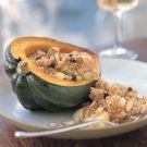 Other small winter squash, such as butternut squash, will work well in this dish, as the orange flesh is sweet and will be complemented by the spiced couscous. Simply cube the squash, roast in chunks and stir into the cooked couscous. The roasting time will decrease by about 10 minutes.
