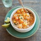 Coconut milk lends richness and exotic flavor to these creamy braised vegetables. It echoes the sweetness of both the root vegetables and the squash, while taming the spicy red curry paste, pungent Asian fish sauce, and bright lime and cilantro that season the broth. Serve over cooked brown rice.