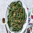 Chinese long beans, also known as yard-long beans and snake beans, will delight kids and impress adults, making them a festive part of a Lunar New Year celebration. Look for them at farmers’ markets and Asian groceries, where they are often sold tied into bundles. Vary the quantity of chili paste according to your taste; add more if you prefer a spicier dish.