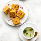 Yumna Jawad, the blogger and entrepreneur behind Feel Good Foodie, includes this not-too-sweet cake as the dessert course of her Ramadan menu. Sfouf is an Arabic word that means “lines,” she explains, a reference to the way the cake is cut into lines. Easy to prepare, it includes semolina, canola oil and turmeric, which tints the batter a rich yellow color. Instead of greasing the cake pan with oil, Yumna coats it with tahini; the sesame paste brings richness and a nutty flavor to the dessert. Pine nuts or almonds sprinkled on top add crunch.