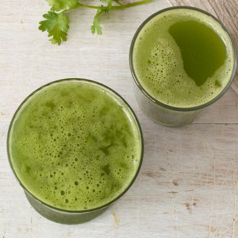 Collard greens have a similar nutritional profile to that juicing superstar, kale, but they produce significantly more juice, making them not only supremely healthy but also supremely economical. This mix, enhanced by the detoxifying boost of cilantro, has a delicious sweet-spicy kick.