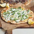 Transfer the pizza to a cutting board and squeeze a few drops of lemon juice over the pizza. Grate or crumble half of the ricotta salata over the pizza and sprinkle with half of the basil. Cut into slices and serve immediately. Repeat to cook the remaining pizza. Makes two 10-inch pizzas.