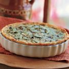 Bake the quiche until a knife inserted into the center comes out clean and the top is brown, 45 to 60 minutes. Remove the quiche from the oven and let it firm up for several minutes. If using a tart pan, remove the sides and slide the quiche onto a plate. Serve hot or at room temperature. Serves 6 to 8.