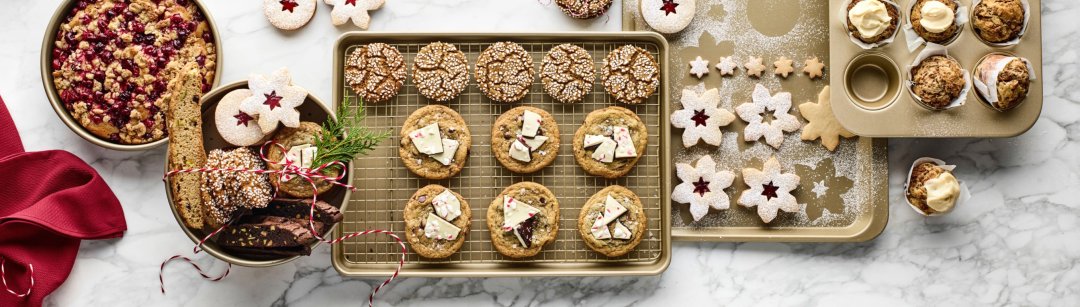 Get ready for baking batches of cookies, seasonal pies and delicious cakes with our expansive bakeware collection. Bread and loaf pans turn out aromatic French bread and brioche as well as traditional and decorative loaves of fresh bread. Our nonstick bakeware sets – from two to 25 pieces – make great gifts and starter sets for bakers of all ages, including junior chefs. Williams-Sonoma’s Goldtouch surface covers several of our cupcake and muffin pans for easily popping out sweet treats. You can also create beehive cupcakes, mini muffins and bouchon cakelets. Our bakeware collection is complete with mixing bowls, measuring cups and spoons, scales, decorating tools, cookie cutters and much more.