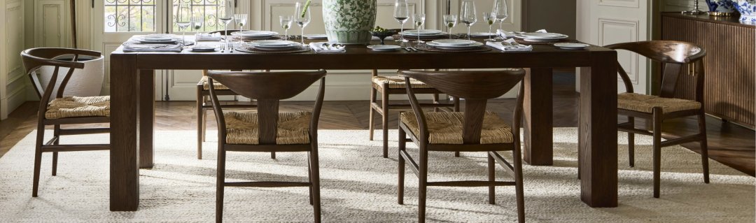 - Dining Room Furniture: Create a sophisticated dining space with the Mercer dining table, which comes in various sizes and tabletop options. It can be ordered with a glass top, or with one crafted from Carrara marble. For a perfectly coordinated look, choose Mercer dining chairs to go with the table.