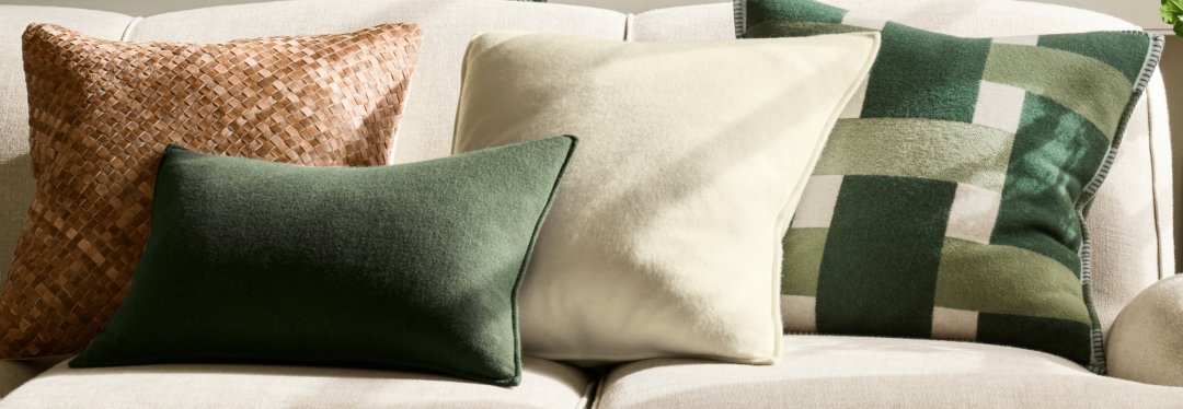 Discover a wide variety of different accent pillow types that you can choose from based on what you’re looking for. If you’re looking for waterproof pillows for your home’s exterior seating areas, for example, our selection of outdoor pillows provides a range of colors and styles you can use to enhance your space. You can also shop by material, with richly textured options such as velvet, faux fur and leather offering you the opportunity to express your style and embrace extra softness with a blend of different materials. No matter which type of pillow matches well with your needs, remember that it’s important to think about how you want to coordinate the pillows you choose with the existing decor in each specific room where you plan to place your pillows. You might want to stick with a specific material in order to create a specific atmosphere. Or you might go for a contrasting color to add a pop of brightness to the space. Make sure you match pillow cover size to the size of your pillow inserts. Or choose some fresh new pillow inserts to go with your covers.