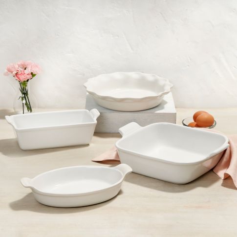 White ceramic cookware is another choice that's timeless in its appeal and thoroughly modern in application. Browse the exceptional range of bakeware and serving pieces that go from kitchen to table and back to kitchen to display prominently after clean-up and care.