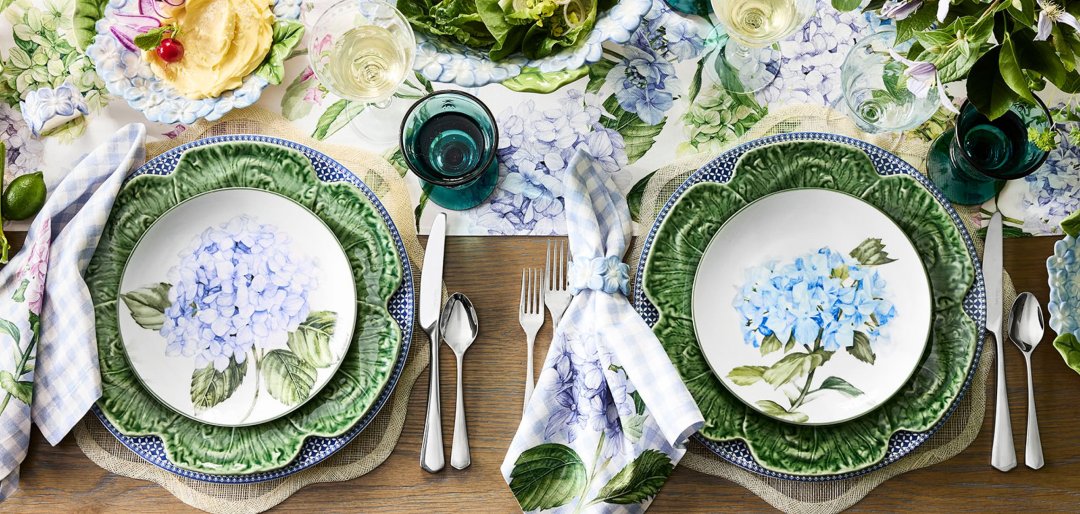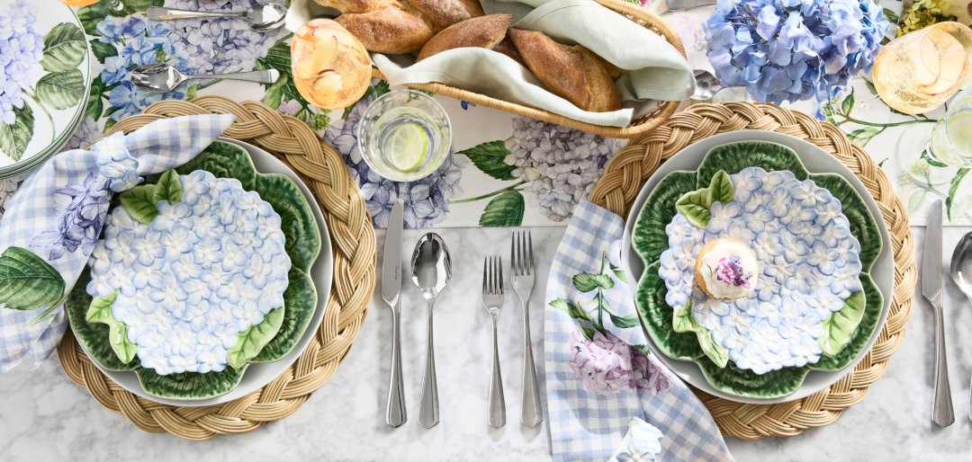 Bring seasonal charm to your table with our Hydrangea dinnerware collection, featuring soft color and delicate figural details.