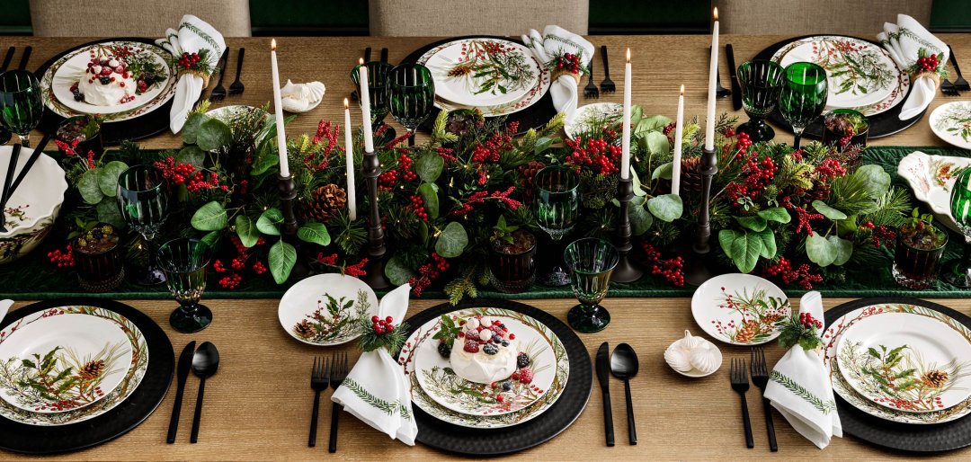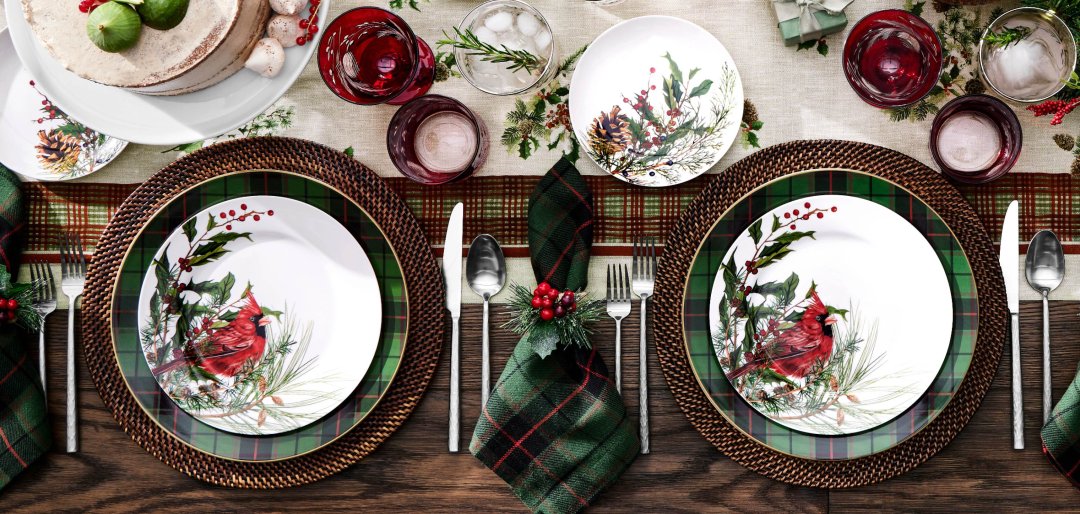 Inspired by a winter forest, this collection is adorned with winterberries, pine branches and cardinals. Made of durable porcelain, these pieces are designed to layer with a variety of seasonal and solid-colored dinnerware.